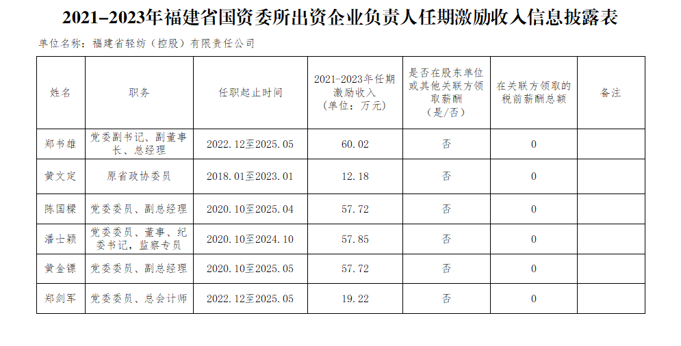 2021-2023年福建省國資委所出資企業(yè)負(fù)責(zé)人任期激勵(lì)收入信息披露表